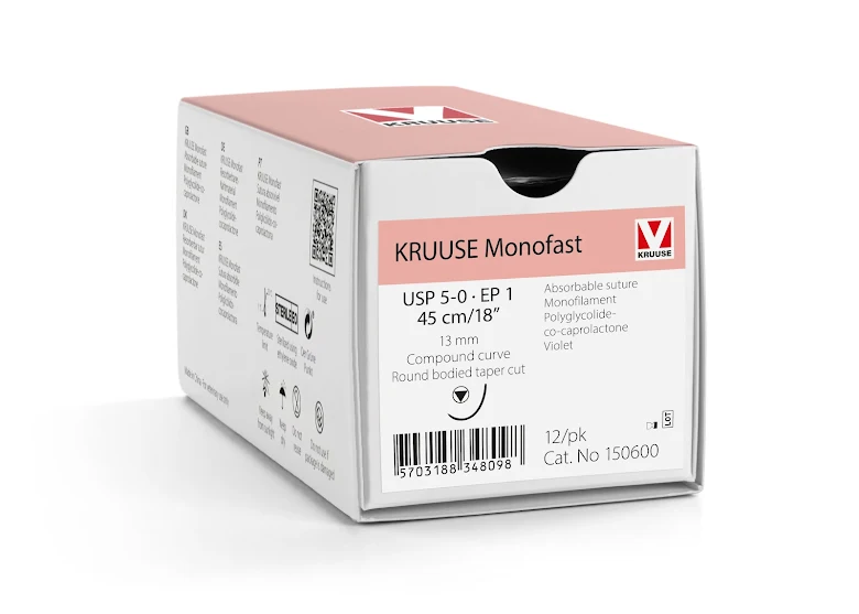 KRUUSE Monofast är en monofil, resorberbar sutur. Suturen resorberas genom hydrolys. Den släta ytan ger minimal vävnadsreaktion och minskar förekomsten av infektion och trauma.